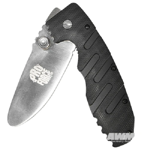 This folding practice knife has an unsharpened 4″ stainless steel blade with chrome plating and rounded tip. The folding lock blade style includes a handy belt clip. The 4-3/4″ handle features a rubber grip area for better control. Blade cannot be sharpened.