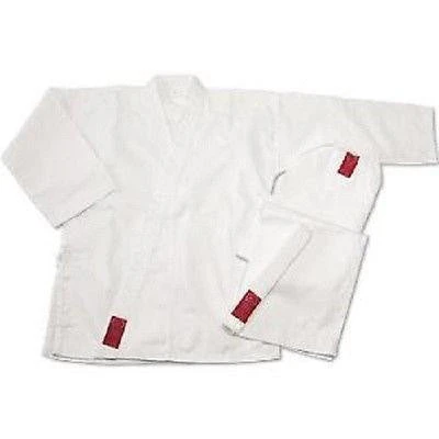 This classic relaxed fit middleweight karate uniform features a top quality 55% cotton/45% polyester 7.5 oz. blend. The uniform features a full cut traditional jacket, elastic pullstring waistband pants and a FREE white belt with every set. The uniform is stitched with reinforced seams with a gusseted crotch and offers an easy-care, wrinkle-resistant durability. This uniform is perfect for all students looking for a middleweight karate uniform. Available in Black, Blue, Red and White.